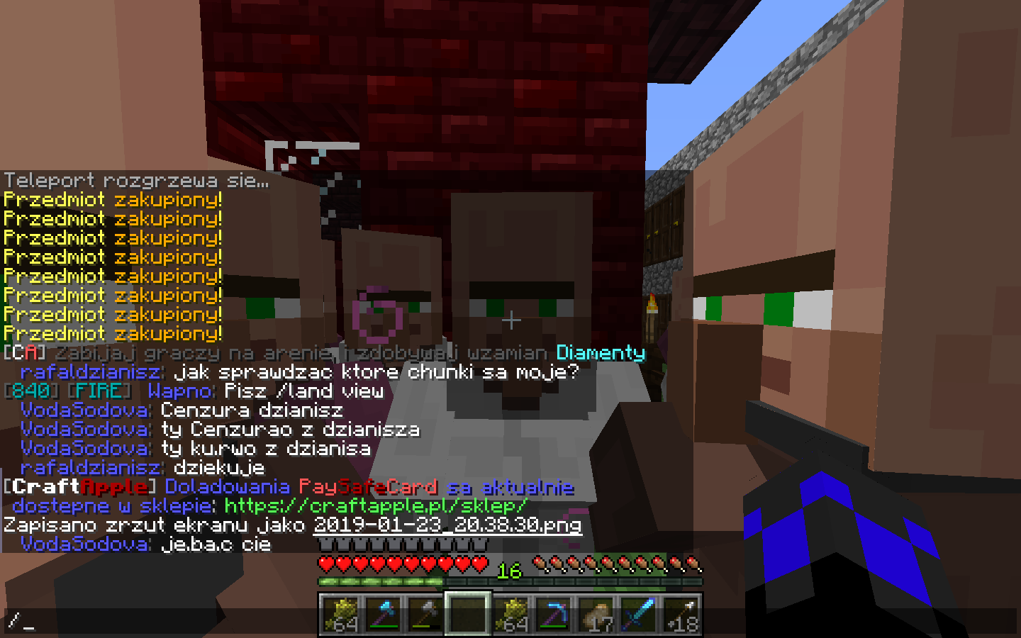 Nick w grze: Wapno Nick oskarżonego/oskarżonych: VodaSodova Serwer: (np. survival/creative) Survival data: 2019-01-23 Opis wykroczenia: wulgaryzmy na czacie Dowód: http://mkol.ct8.pl/wp-content/uploads/2019-01-23_20.38.31.png
