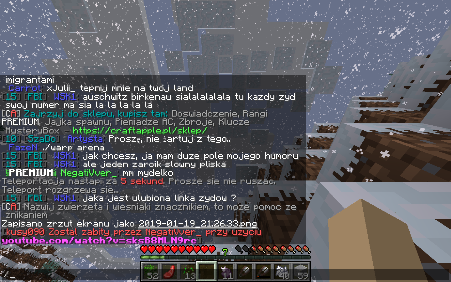 Nick w grze: Wapno Nick oskarżonego: WSK1 Serwer: Survival data: 2019-01-19 Opis wykroczenia: niestosowne żarty Dowód: http://mkol.ct8.pl/wp-content/uploads/2019-01-19_21.26.34.png